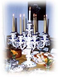 The Chanuka menorah has place for eight candles and for a ninth candle set off somewhat from the rest. The eight candles commemorate the miracle of the oil while the ninth candle, the shamash, is for light. The first use of an eight-armed menorah for Chanuka is not known, although there are some dating back over 500 years.
