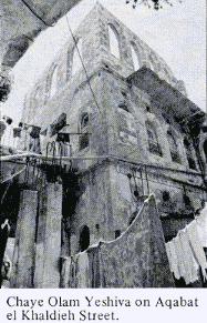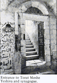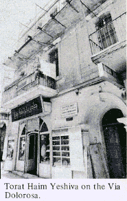 He writes a full description of what is today called the Moslem Quarter, and says as follows: Not only did the majority of Jews of Jerusalem live in the so-called 'Moslem' Quarter, but, also the more important Jews lived there, rather than in other sections of the city. And he goes on to describe twenty-two synagogues (I've been able to locate practically all of them), many mikvaot and yeshivot, among them, the biggest yeshiva in that part of the city - which is fortunately still standing - Torat Chaim. As you come from Damascus Gate, it's on the left side of El Wad Road. Very strange: it is right on the Via Dolorosa part of the street. (The Via Dolorosa curves at one point, and part of it is on El Wad Road.)