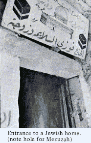Then you have another big yeshiva, Chaye Olam, with a Talmud Torah of twenty-two classrooms -- each classroom today is an Arab home. (A Talmud Torah consists of eight grades, and here there were three parallel classes.) Part of the building is now unused. That part was never finished because the Arabs brought a case against it in 1927 when the yeshiva wanted to start a new wing. They weren't able to finish it, so they just have the walls up. The yeshiva is close to what is the holiest part of Jerusalem for Jews. Here is an entrance to the Temple area. It's called Bab el-Katunin which means Gate of Cotton, because there were cotton shops there. It's now being repaired by the Moslems. It leads straight to the Mosque of Omar which is called by the Arabs Sakra, meaning the 'Mosque covering the stone' which is our Even Shtia the holiest spot for Jews in this world, the ancient Holy of Holies, the stone upon which the Ark rested.