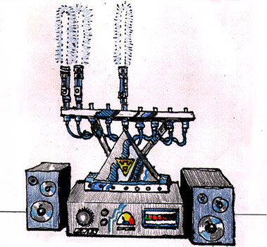 ![]() Modern American 3000 watt LASER menorah with sub-woofers and tweeter |