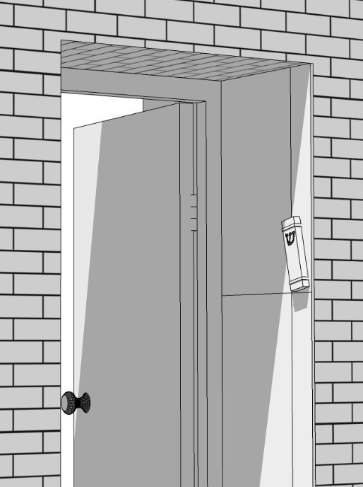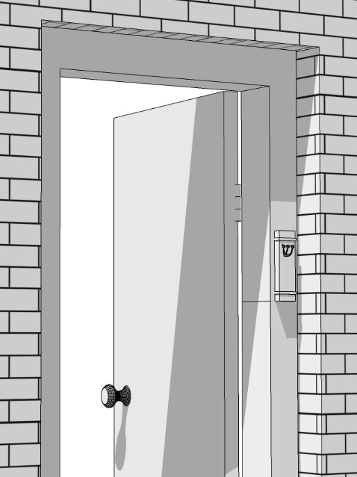 Mezuzah on wall Mezuzah on doorpost under lintel facing out