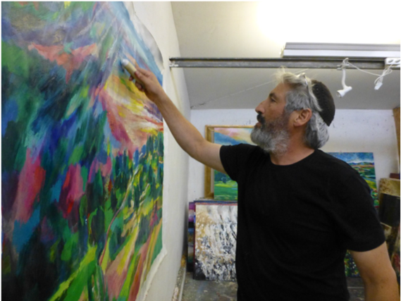 Most people would have been depressed by such a catastrophic event, but with his emunah intact, he saw the Hand of Hashem in the fire and was filled with a sense of hope. A spirit of freedom swept over him. Starting over was a challenge, but it was also a blessing. His finances were stretched to the limit. All his tangible assets had been burnt up. But, miraculously, and without his asking, money started pouring in from people all over the world who had read about his loss. Until that point in his life, he had given tzedaka, but had never taken it. Now the shoe was on the other foot and he humbly accepted donations. But he also felt that he had now incurred a debt. With the donations, he designed and built a new studio that was much more to his liking than the old. The ceiling was more than four meters high. There were more windows and more light. And he dedicated himself to giving back to a world that had been so kind to him, in the form of his new and energized artistic expression. Whereas before, when he had felt somewhat inhibited in his painting, he now felt freer, much more confident and intense. The art world has noticed and they come flocking to his door from all over the globe.